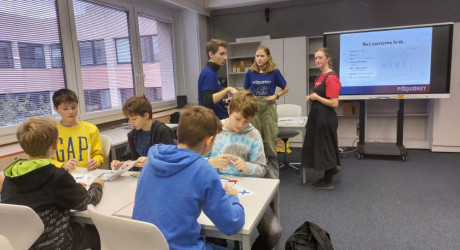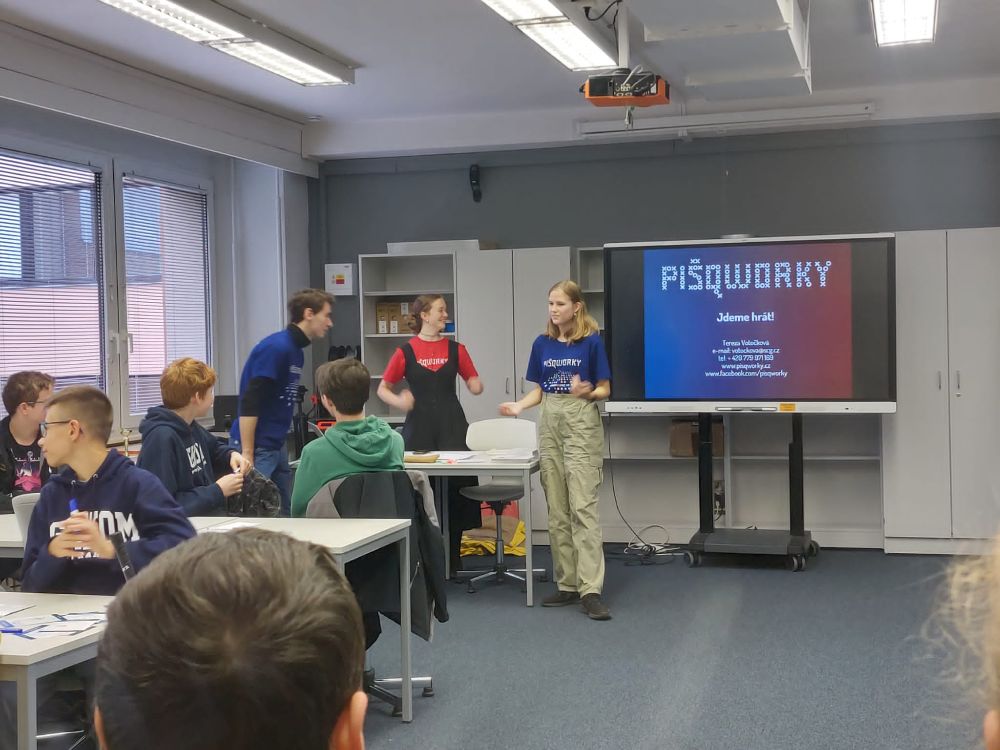 Na Gymnáziu mezinárodních a veřejných vztahů v Praze se utkaly v pIšQworkách týmy o postup do kraje!