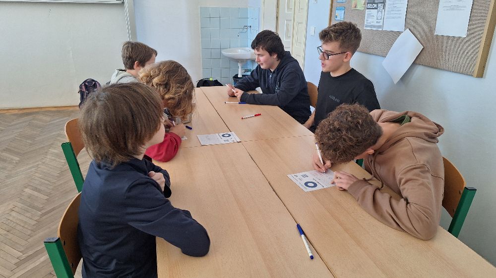 Žáci byli rozlosováni do dvou skupin. Pětičlenné skupině A jasně dominovaly týmy GJP a Indian scammers. Oba dosáhly stejného počtu bodů a jejich skupinové umístění muselo rozhodnout nahrané skóre, které se lišilo pouze o 2. Těsně za nimi byl tým Firmissima amicitia a dále Gympl a Lentilky.